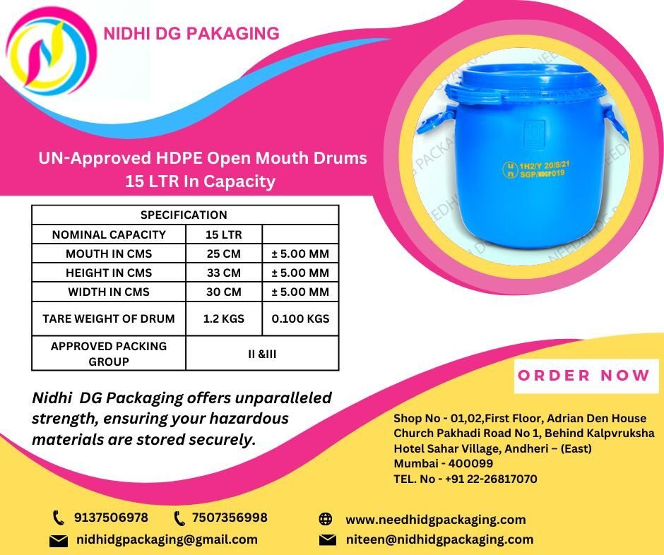 Leading Manufacturers, Exporters, Wholesaler, Trader of 15 Ltr. Un Approved HDPE Open Mouth Drum, 30 Ltr. Un Approved HDPE Open Mouth Drum, 40 Ltr. Un Approved HDPE Open Mouth Drum, 50 Ltr. Un Approved HDPE Open Mouth Drum, 60 Ltr. Un Approved HDPE Open Mouth Drum, 80 Ltr. Un Approved HDPE Open Mouth Drum and 120 Ltr. Un Approved HDPE Open Mouth Drum from Mumbai.